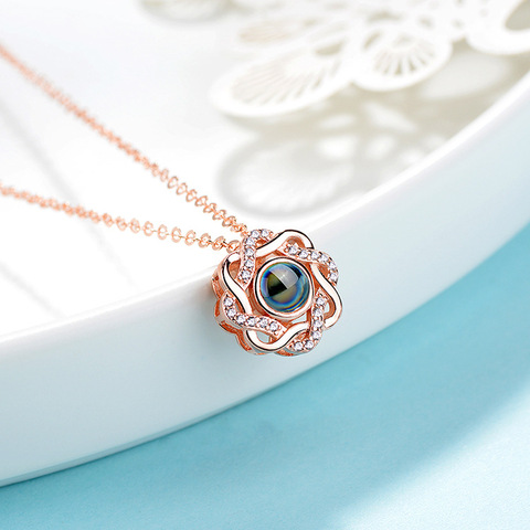 Lateefah Trendy Dames Zonnebloem Ketting 100 Talen Projectie Hanger Modieuze Zirkoon Steen