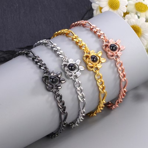 Aanpasbare Vergulde Hond Klauw Projectie Armband 100 Talen Ik Hou Van Je Met Kleurenfoto 'S Voor Jubileum